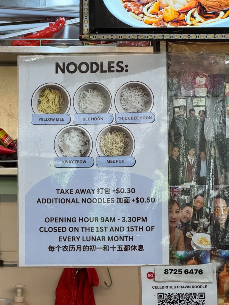 Tanjong Pagar のホーカーセンターで Prawn Mee(プラウンミー) をいただきました。プラウンミーとは直訳すると「エビ(=Prawn)麺(=Mee)」で、英語では Prawn Noodle とも呼ばれています。