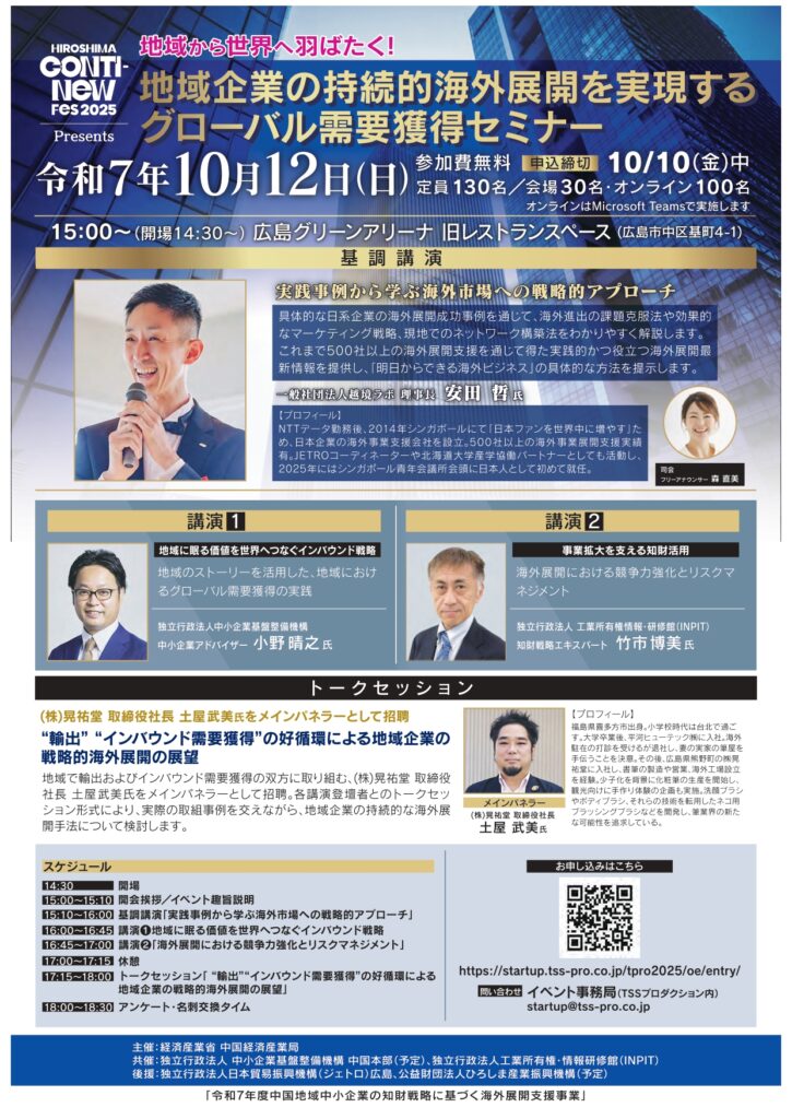 後援:独立行政法人日本貿易振興機構(ジェトロ)広島、公益財団法人ひろしま産業振興機構(予定)
